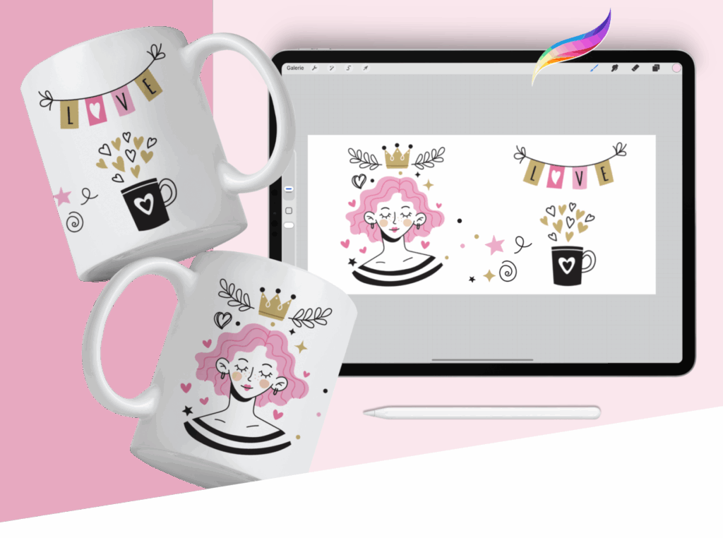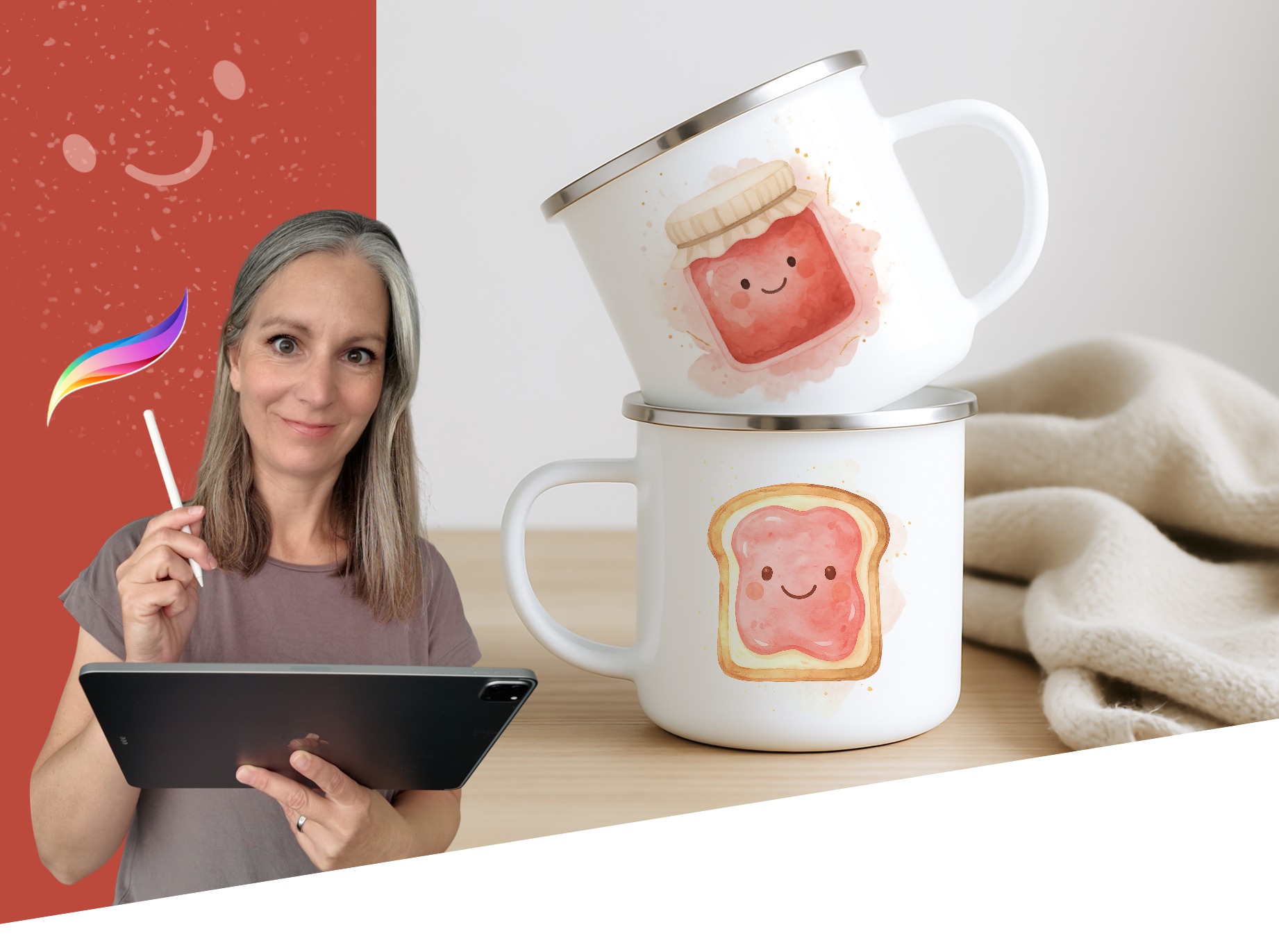 Wichtig: In diesem Workshop bekommst du das komplette Know-How, um deine Procreate-Illustration auf eine deiner Lieblingstassen drucken zu lassen. Die physische Tasse, also das Produkt, ist nicht im Preis enthalten.