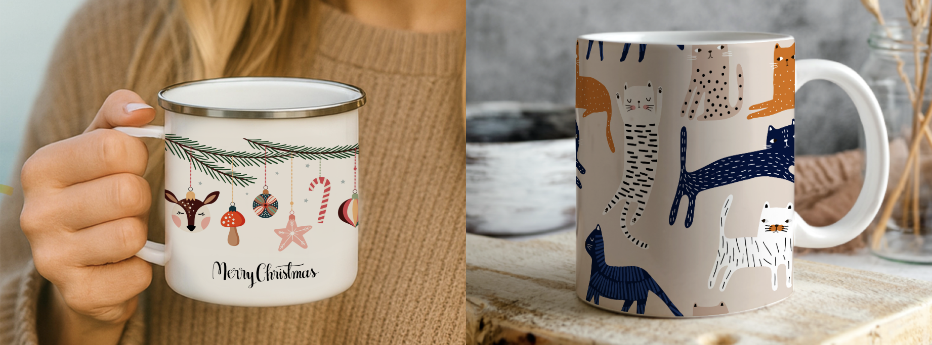 Wir gestalten gemeinsam zwei Motive – für einen charmanten Emaille-Becher und eine Panorama-Tasse – zwei echte Klassiker, die immer gut ankommen! Ich nehme dich Schritt für Schritt mit: